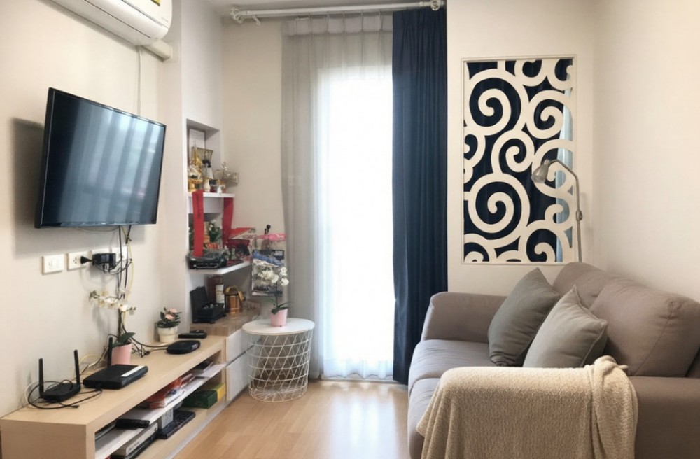 ✅ Layout ลงตัว: แบ่งสัดส่วนชัดเจน 1 ห้องนอน 1 ห้องน้ำ มีเคาน์เตอร์ครัวแยก เหมาะกับวิถีชีวิตคอนโด พื้นปูด้วยลามิเนตสภาพดี ดูแลรักษาง่าย