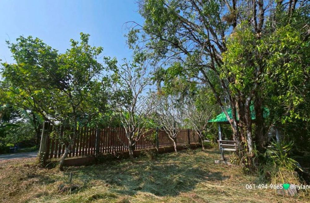รูปที่สี่เหลี่ยมสวย มีศาลาพักผ่อน ห้องน้ำในสวน แทงค์น้ำสำรอง มีรั้วรอบพื้นที่สวย