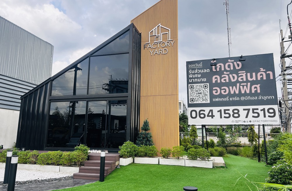ลำลูกกา , จังหวัดปทุมธานีโครงการ FACTORY YARD คลังสินค้าพร้อมออฟฟิศ แนว Modern Contemporary design มีพื้นที่ทั้งในย่านพื้นที่สีม่วง และสีเขียว ทำเลหลักติดถนนใหญ่ การคมนาคมสะดวก