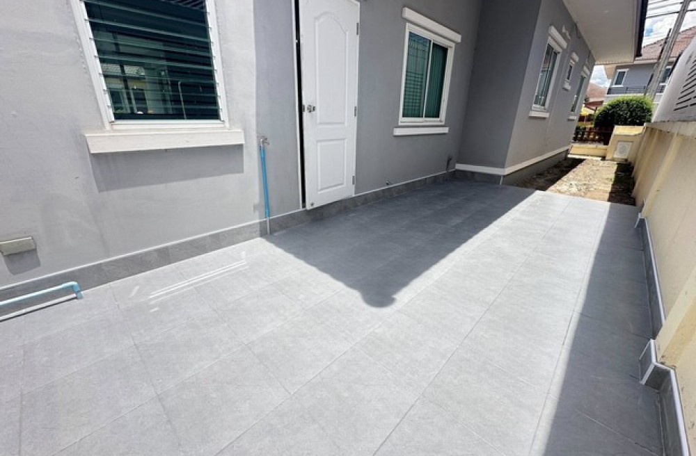 - ปูกระเบื้องพื้นที่ซักล้างหลังบ้านให้