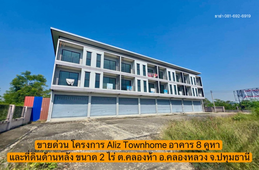 ขายด่วน โครงการ Aliz Townhome อาคารพาณิชย์ทั้งหมด 8 คูหา และที่ดินเปล่าด้านหลัง พื้นที่รวม 2 ไร่ ต.คลองห้า อ.คลองหลวง จ.ปทุมธานี