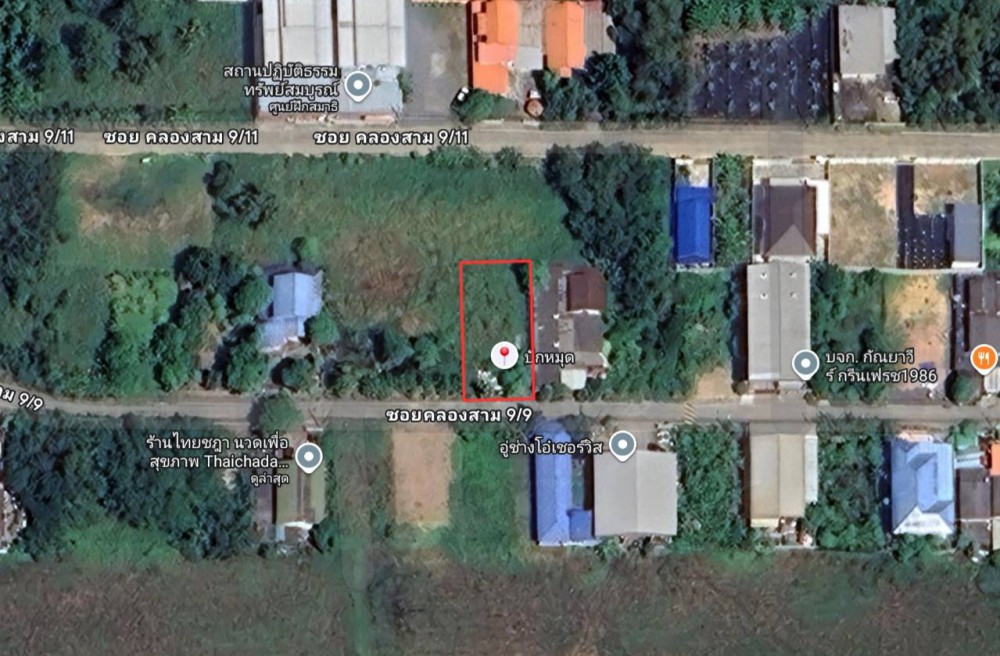 ขายที่ดินซอยคลองสาม 9/9 พื้นที่ 104 ตร.ว.(สี่เหลี่ยมผืนผ้า)