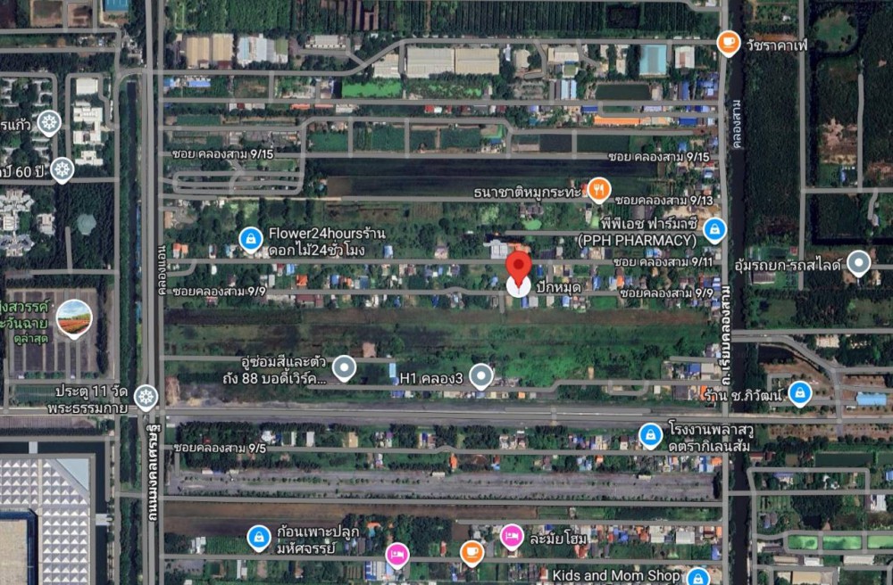 คลองหลวง , จังหวัดปทุมธานีขายที่ดินซอยคลองสาม 9/9 พื้นที่ 104 ตร.ว.(สี่เหลี่ยมผืนผ้า)