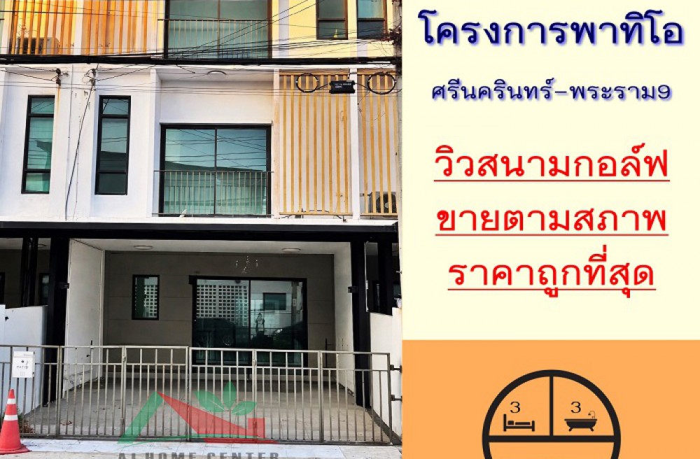 เขตบางกะปิ , จังหวัดกรุงเทพมหานครขายถูกสุด4.1ล้าน ทาวน์โฮม3ชั้น 19.9ตรว. วิวสนามกอล์ฟ ม.พาทิโอ ศรีนครินทร์-พระราม9 จัดกู้ฟรี