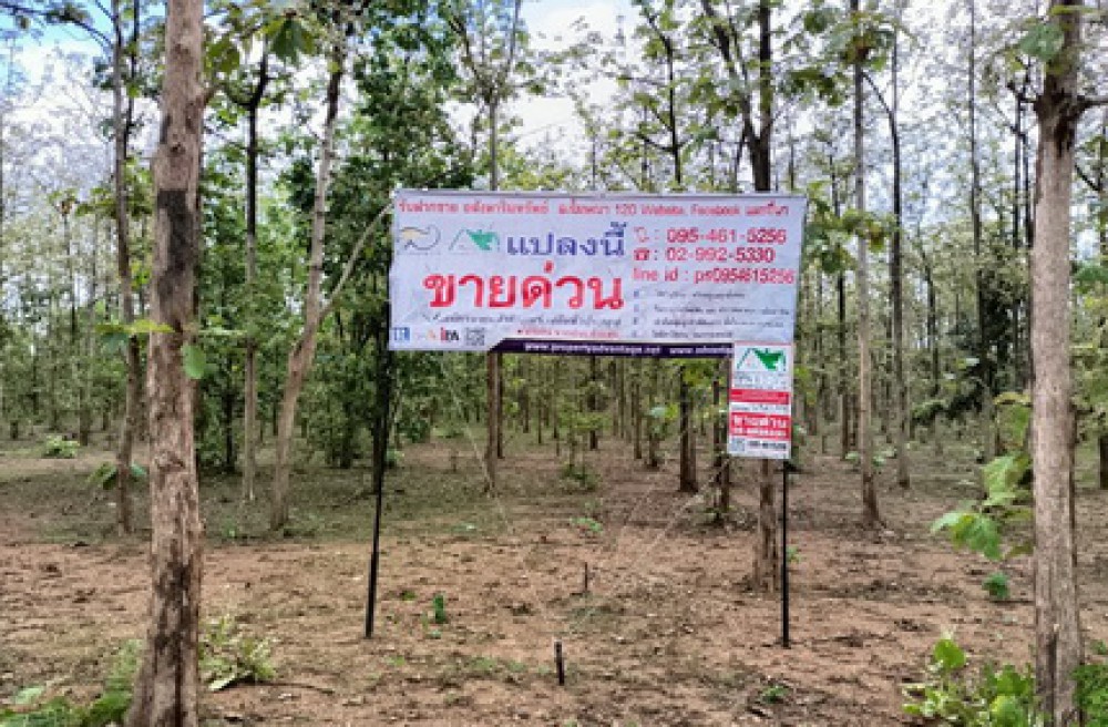 2512ACL2044 Land for sale with teak plantation, 8-2-21 rai (5 adjacent plots), width 128 meters, depth 106 meters, next to public roads on 3 sides. There are teak trees in the land for sale with teak trees. Teak trees have been planted for 10 years (can be cut and sold), approximately 1,400 trees are planted in the area, suitable for cultivation or speculation.