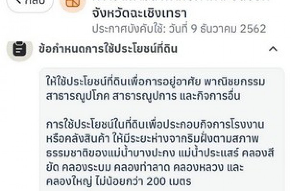 ทำเล: ต.บางพระ อ.เมืองฉะเชิงเทรา ผังเมืองสีส้ม ม.-7 ประเภทชุมชนเมือง