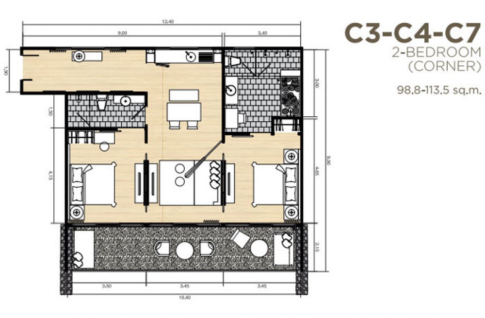 ขนาดพื้นที่ 112.57 ตรม. ชั้น 6 ห้องมุมใหญ่สุด