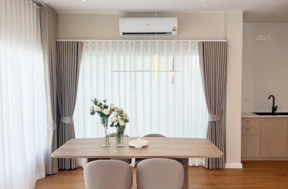 แถมฟรี ปั๊มน้ำ แอร์ 1 เครื่อง โซฟา ชุดโต๊ะรับประทานอาหาร ตู้ เตียงนอน ที่นอน ผ้าม่าน