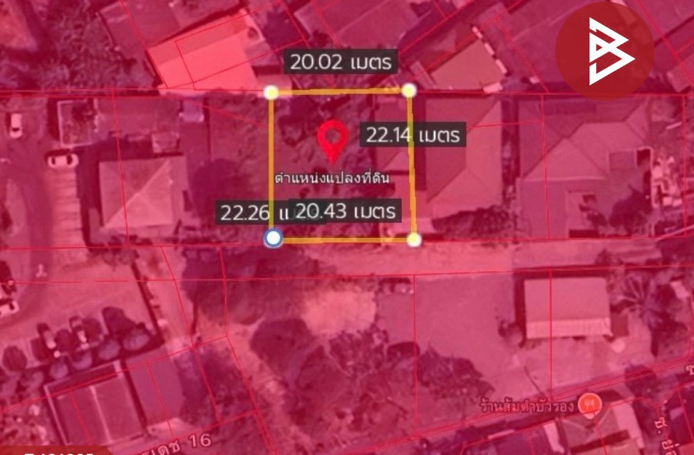 รายละเอียดเพิ่มเติม : -ลักษณะรูปแปลงเป็นสี่เหลี่ยมหน้ากว้างประมาณ 20 เมตร ลึก 22 เมตร