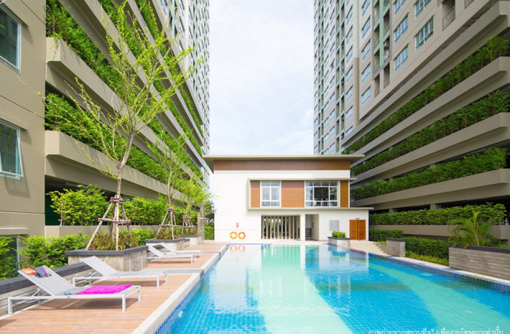 ● ส่วนกลางจัดเต็ม: สระว่ายน้ำ, ฟิตเนส, สวนรวมใจ และห้องสมุด