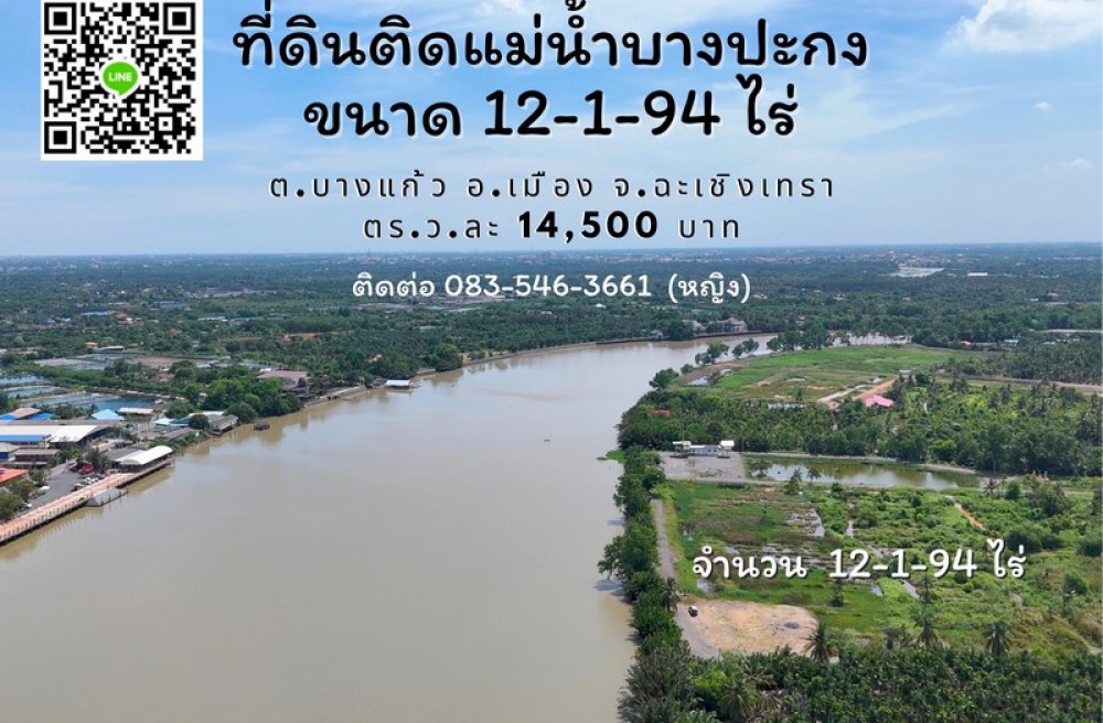 ที่ดินแปลงสวย ติดแม่น้ำบางปะกง