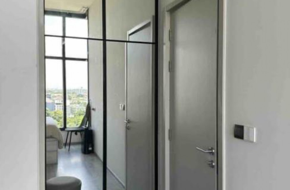 ห้องขนาด 33 ตร.ม. ชั้น 9, 1 ห้องนอน 1 ห้องน้ำ พร้อมเฟอร์นิเจอร์ครบครัน ตกแต่งสไตล์ Modern Contemporary.