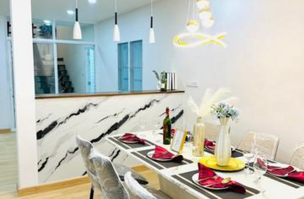 พร้อมบิวท์ผนังห้องโถง ชุดโต๊ะหินทานข้าว 6 ที่นั่ง มีปั๊มน้ำอัตโนมัติ + ถังสำรองน้ำใต้ดิน ฯ