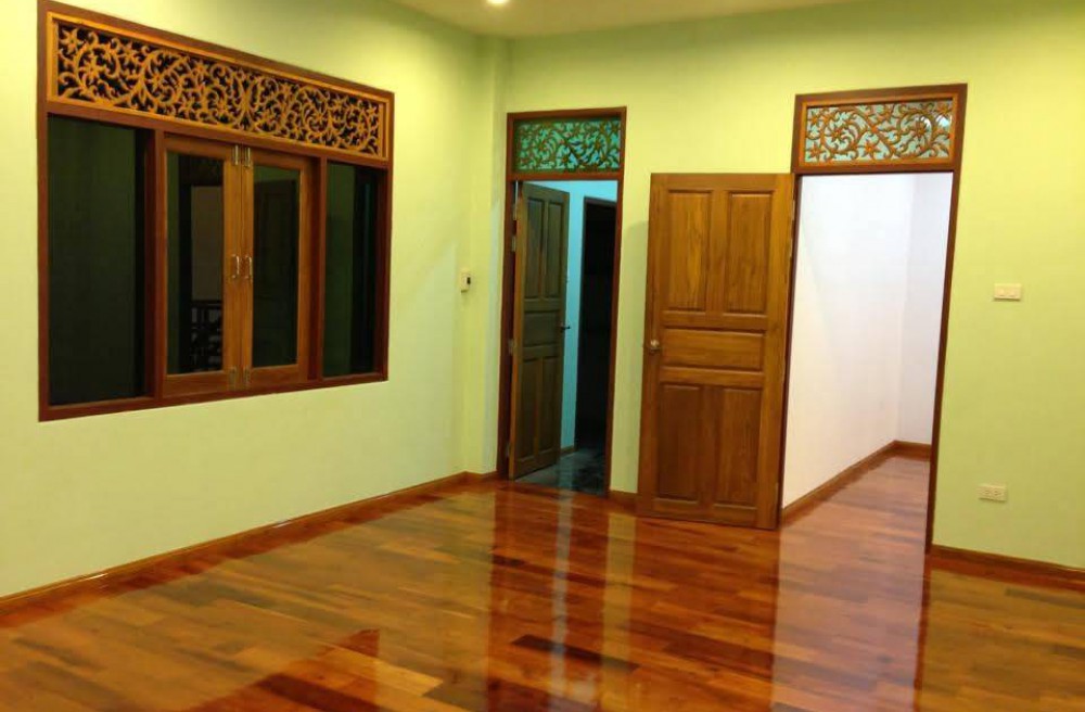 - วงกบ - บานประตูหน้าต่างเป็นไม้สักทองทั้งหลัง