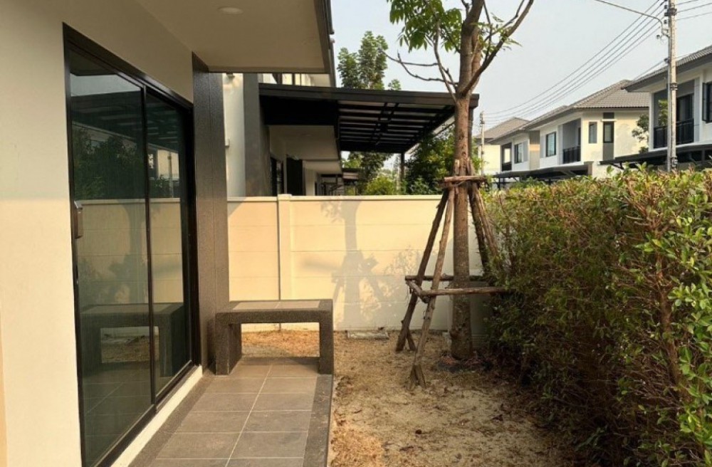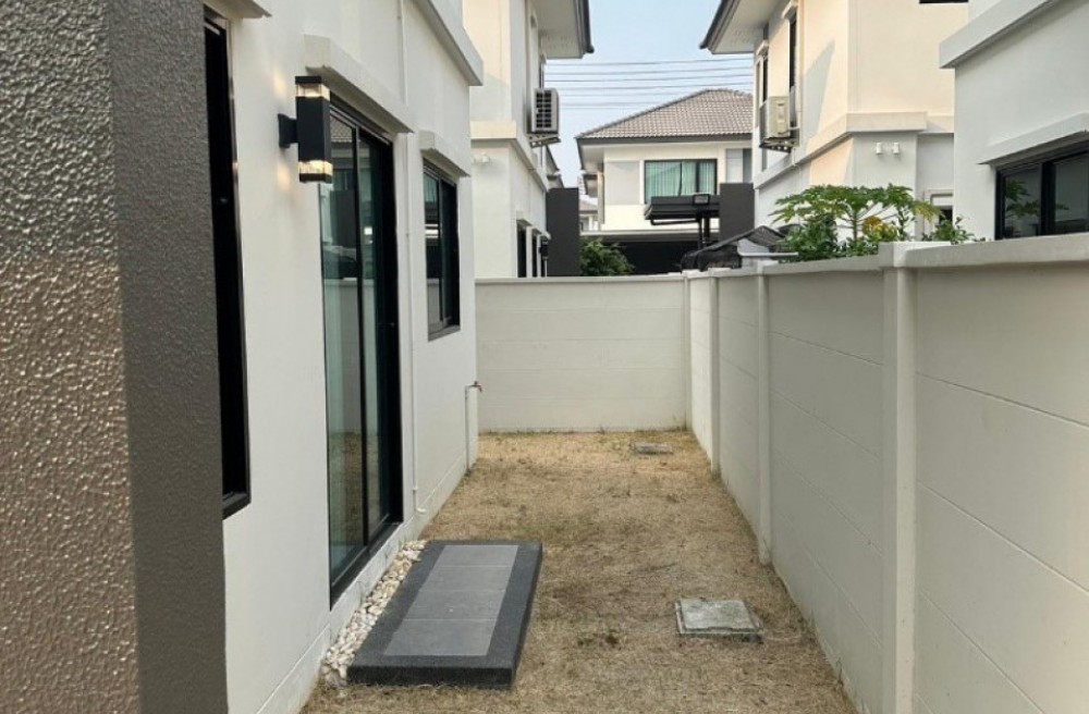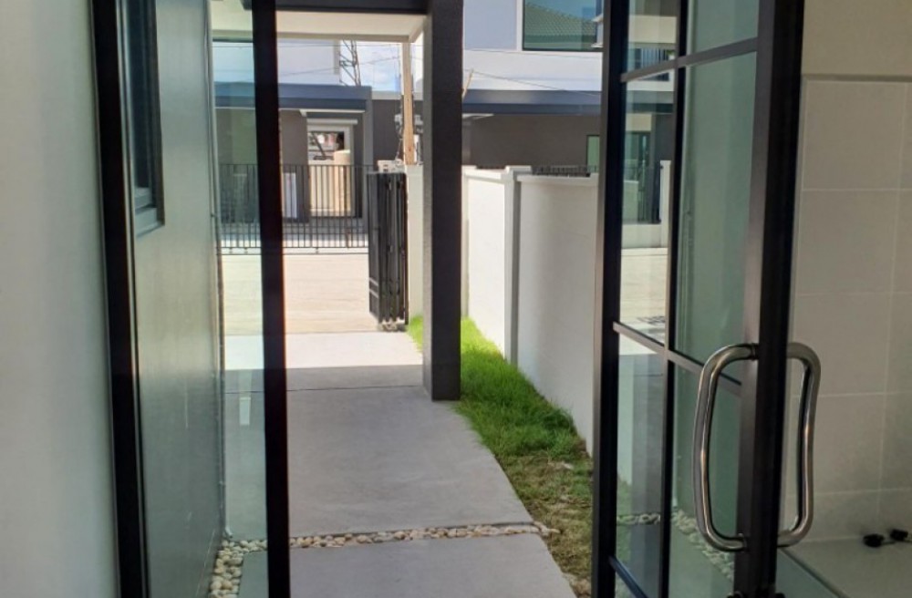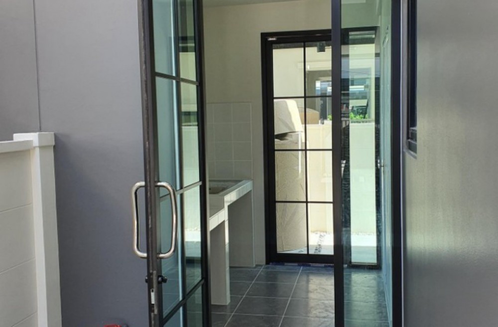 รายละเอียดเพิ่มเติม : บ้านตกแต่งพร้อมอยู่ พื้นที่ครัวไทยยื่นออกด้านข้างติดกับบ้านด้านซ้าย ติดตั้งประตูกระจกบริเวณครัวไทย