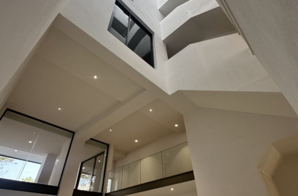 - ชั้นล่างเป็น Double volume ฝ้าสูงโปร่งสบาย มีช่องแสงสวยงาม