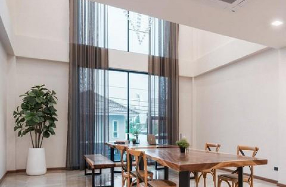 เพดานสูง 2.7 - 2.8 เมตร Double Volume 6 เมตร มีพื้นที่อเนกประสงค์ ไฟ 3 เฟส รองรับ EV Charger แอร์ทุกห้องพร้อมเฟอร์นิเจอร์