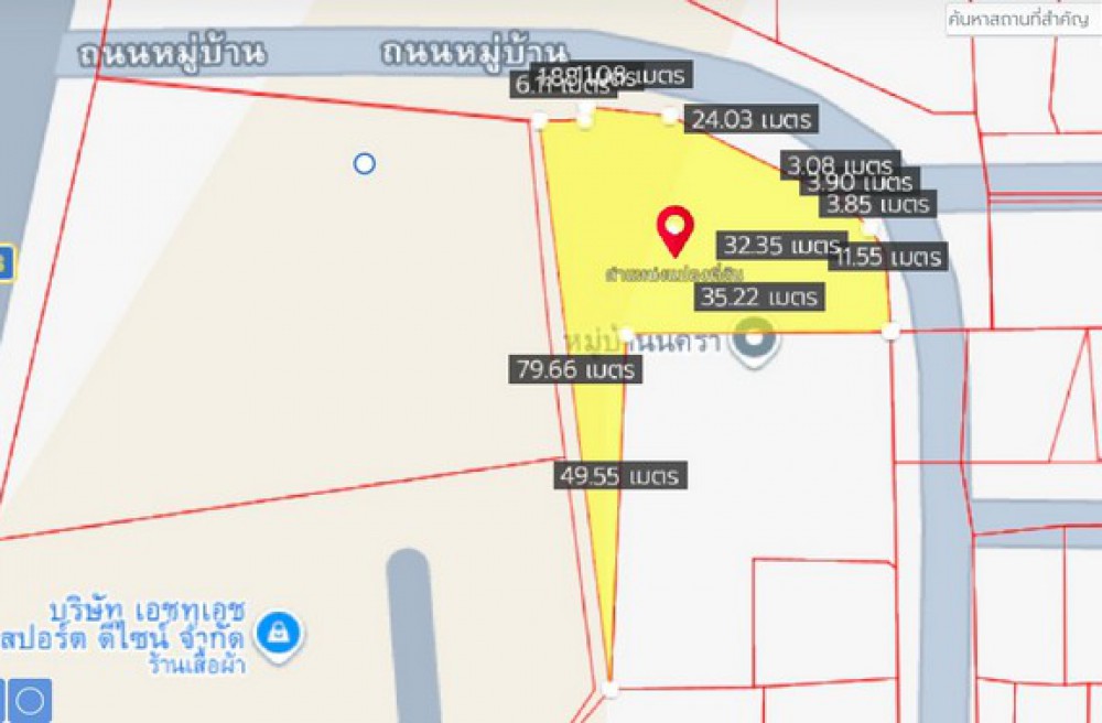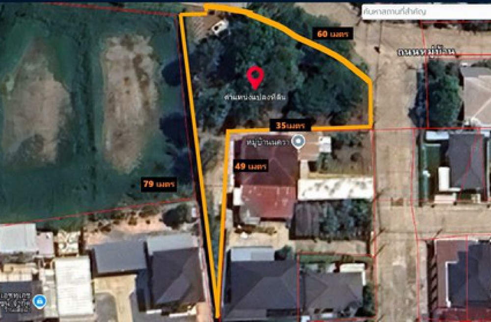 • หน้ากว้างติดถนนเมนในหมู่บ้านยาวถึง 60 เมตร ลึกประมาณ 79 เมตร
