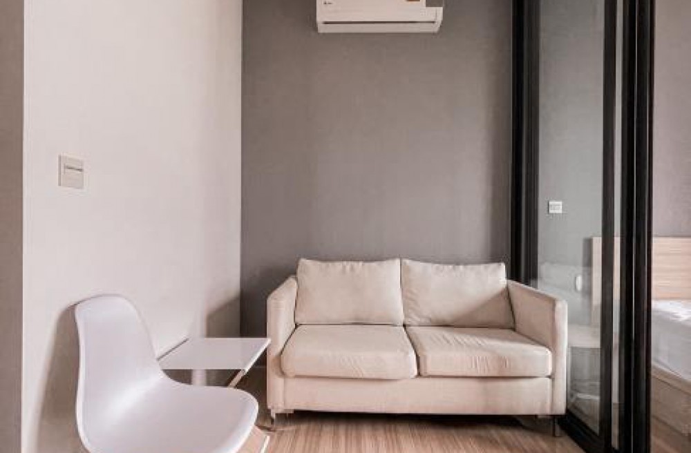 P-120769 Luxurious condo for rent at M Jatujak with stunning city views! This 29 sqm unit on the 12th floor offers fully furnished living, decorated in a modern minimalist style, perfect for city life.