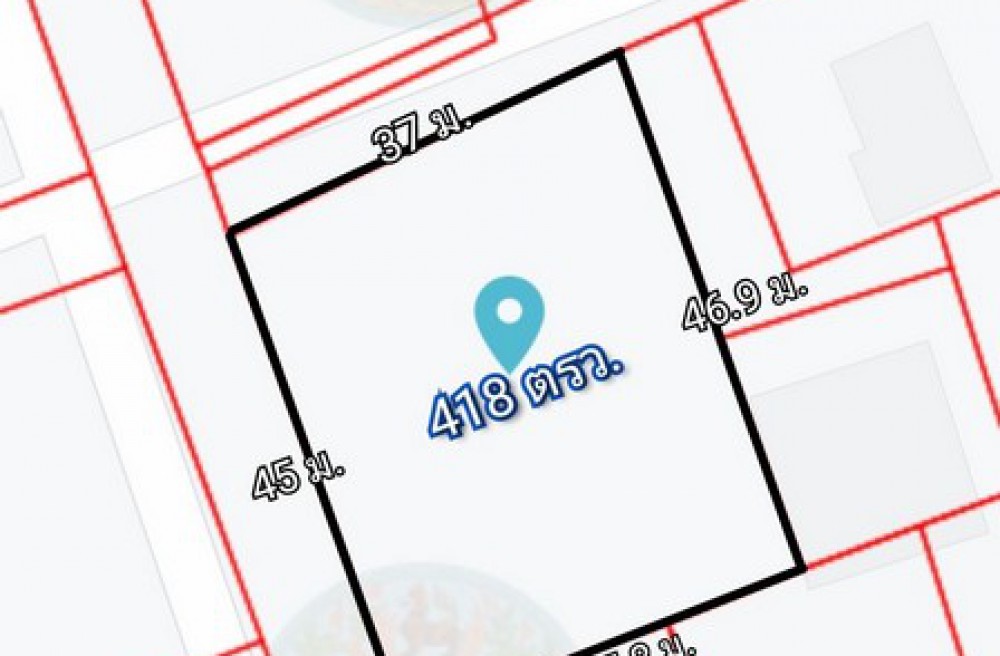 เมืองนนทบุรี , จังหวัดนนทบุรีขายที่ดินงามวงศ์วาน 18 ซอยจุฬาเกษม ขนาด 418 ตารางวา หลังเดอะมอลล์งามวงศ์วาน ที่ดินสี่เหลี่ยมสวย หน้ากว้างประมาณ 45 เมตร, ด้านหลังประมาณ 46 เมตร, ลึกซ้ายประมาณ 35.8 เมตร, ด้านขวาประมาณ 37 เมตร