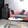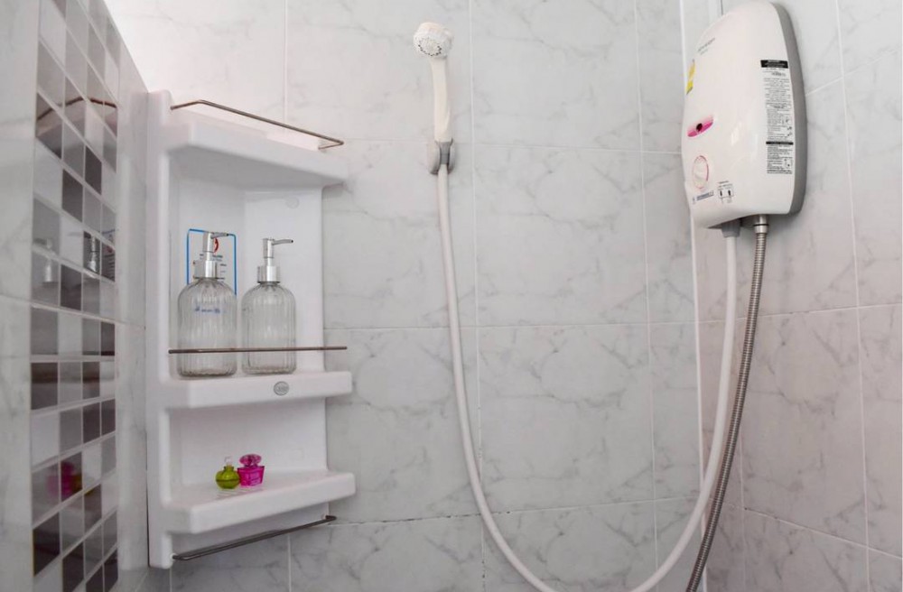 ห้องกว้าง ปูกระเบื้องทั้งห้อง จัดโซนแยกเป็นสัดส่วน
