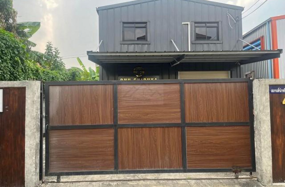 น้ำไฟหลวง มีบ้านเลขที่ เหมาะสำหรับทำออฟฟิศหรือเก็บสินค้า ประตูโกดังเป็นประตูไฟฟ้าประตูรั้วทางเข้าหน้ากว้าง 4 เมตร