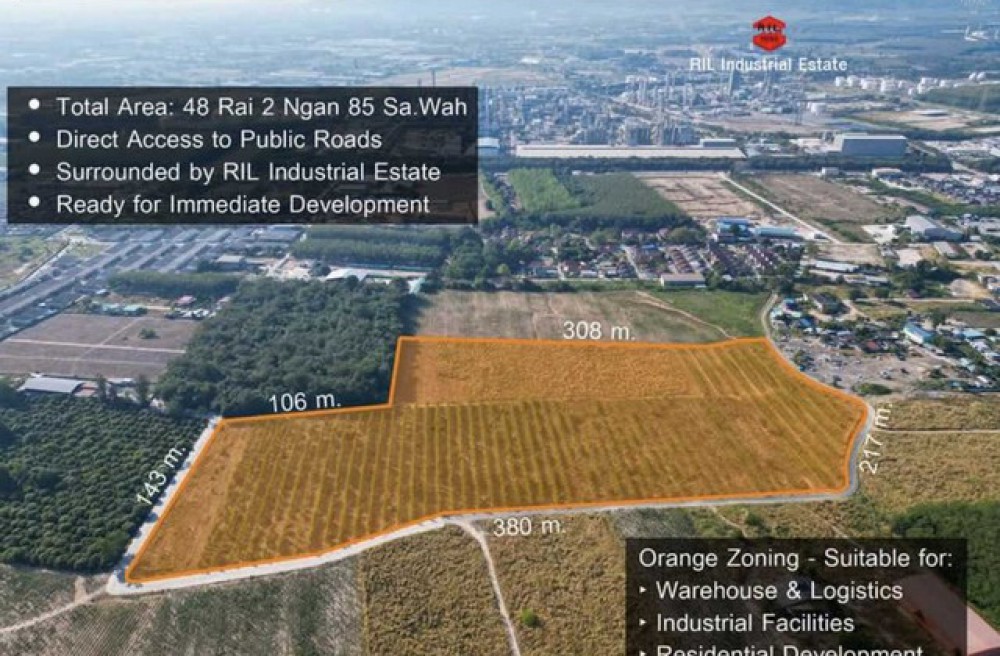 ขายที่ดินศักยภาพสูง ทำเลทอง 48-2-85 ไร่ ต.มาบตาพุด จ.ระยอง ใจกลางโซนอุตสาหกรรม ผังสีส้มเหมาะสำหรับการพัฒนาและการลงทุนระยะยาว