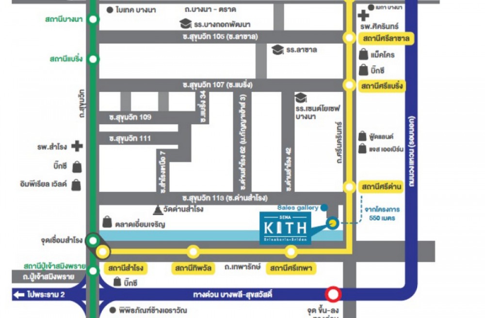 - ใกล้สถานีสำโรง INTERCHANGE รถไฟฟ้าสายสีเหลืองและสายสีเขียว