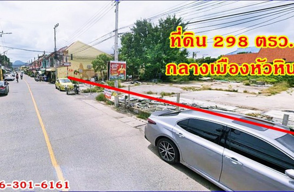 หัวหิน , จังหวัดประจวบคีรีขันธ์ให้เช่าระยะยาว ที่ดินการค้าติดถนนใหญ่กลางเมืองหัวหิน ติดถนน2ด้าน 298 ตรว. ซ.หัวหิน94 โทร 086-301-6161