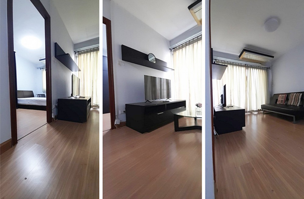 - ห้องขนาด 42.58 ตารางเมตร แบบ 1 ห้องนอน 1 ห้องน้ำ 1 ห้องนั่งเล่น 1 ห้องครัว ตึก7