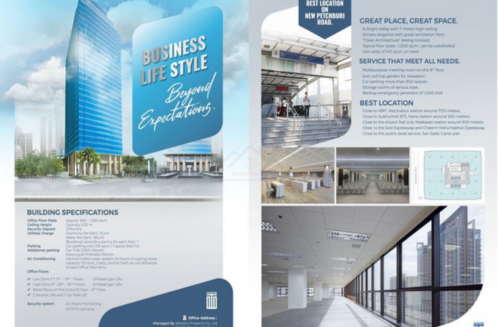 อาคารสำนักงานใจกลางเมือง อาคารธนภูมิ ถนนเพชรบุรีตัดใหม่ ใกล้ MRT เพชรบุรี 700 เมตร