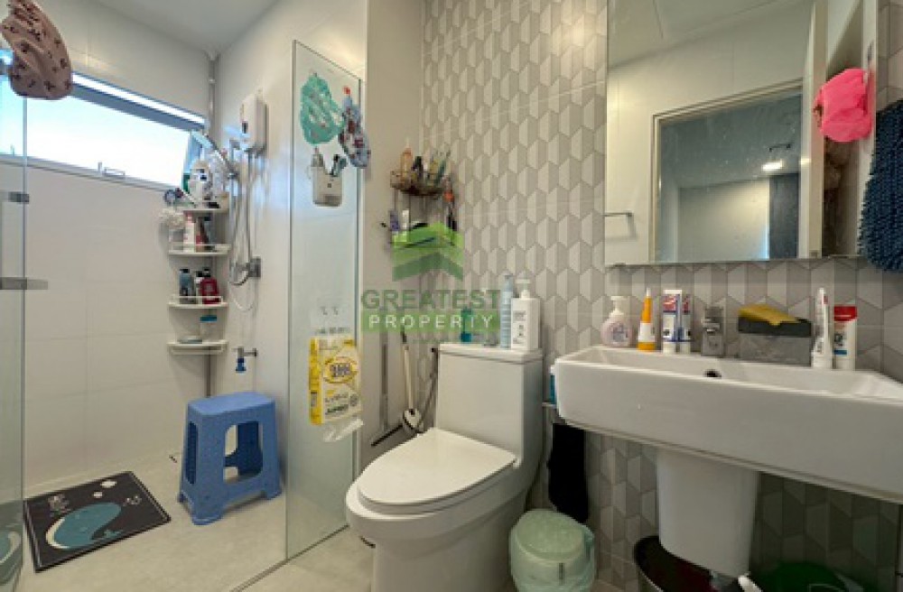 ตกแต่ง : บ้านเดี่ยว 2 ชั้น พื้นที่ใช้สอย 151 ตร.ม ชั้นล่างพื้นกระเบื้องแกรนิตโต้ ขนาด 60 x 60 cm. ชั้นบนปูพื้นด้วย SPC อย่างดี ห้องน้ำแยกโซนเปียก-แห้ง ด้วยตู้กระจกอาบน้ำ ต่อเติมโรงรถหน้าบ้าน ประตูเป็นแบบ Digital door lock บริเวณบ้านร่มรื่น น่าอยู่ สวนสวย มุมนั่งเล่น บ้านสวย พร้อมอยู่