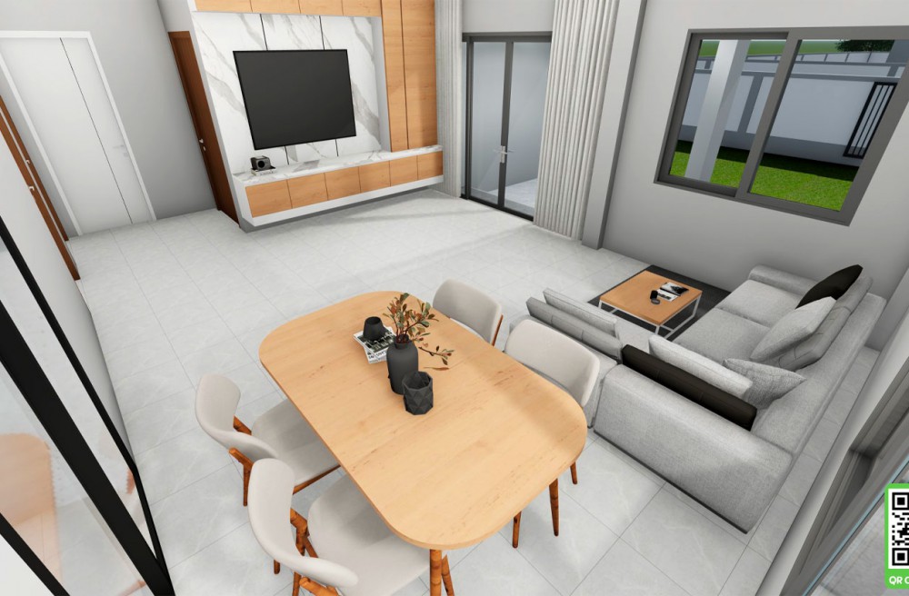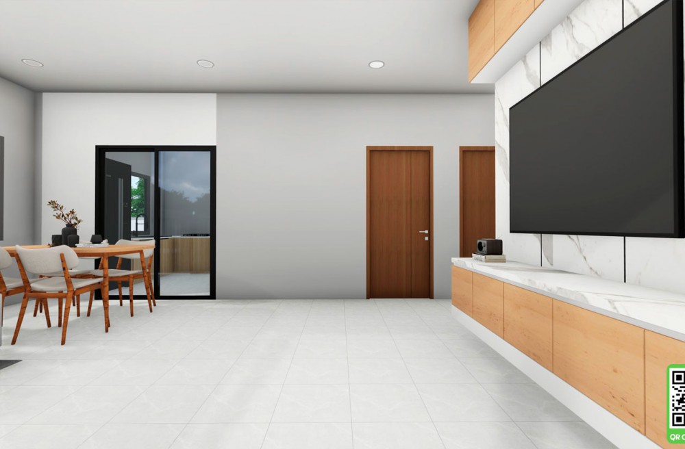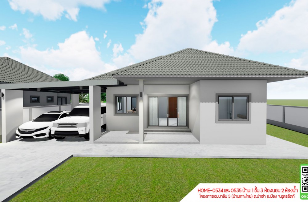 #แบบบ้าน : บ้านเดี่ยว 1 ชั้น 3 ห้องนอน 2 ห้องน้ำ พร้อมห้องครัวและโรงจอดรถ
