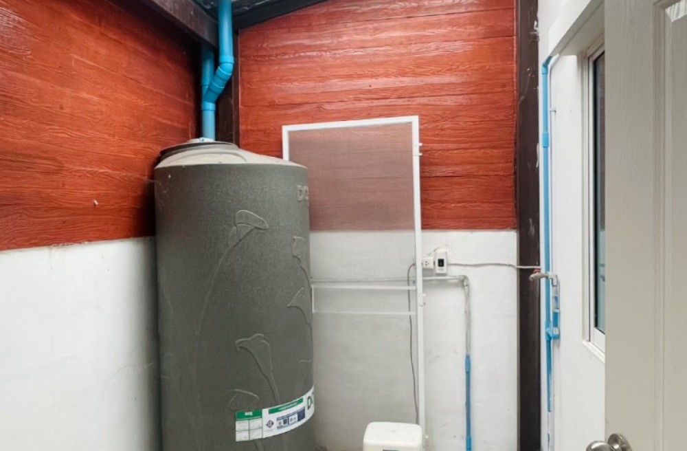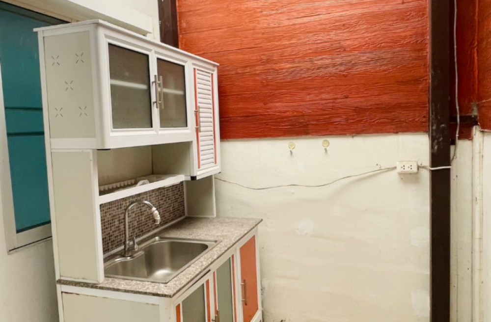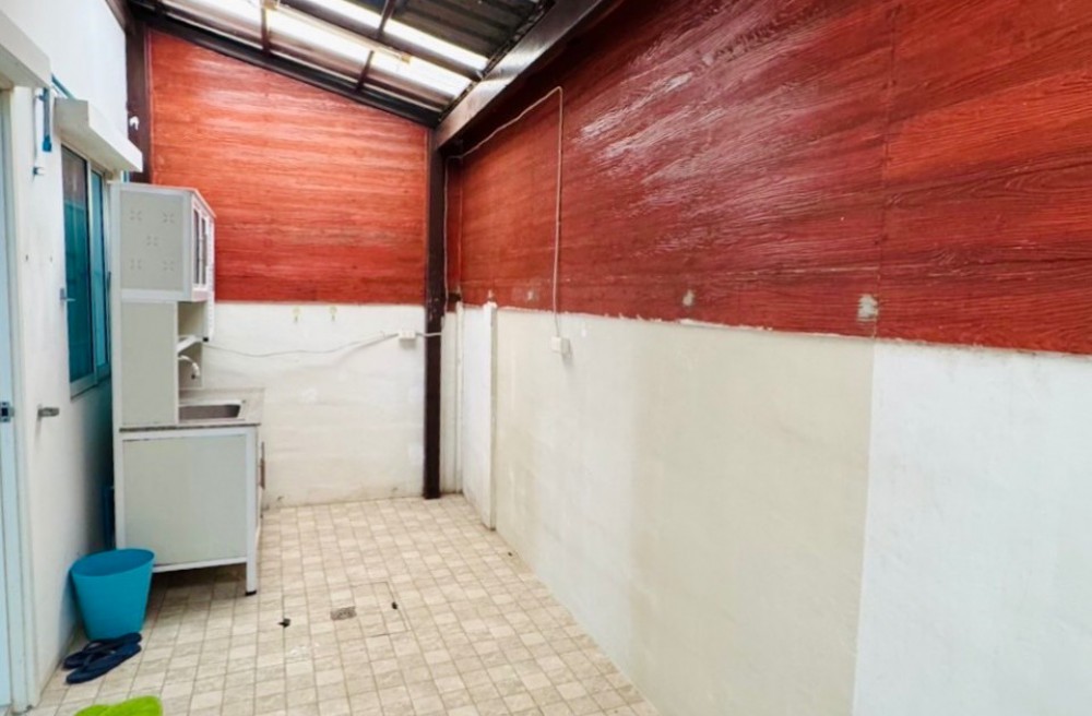 มีต่อเติมพื้นและหลังคาด้านหลังขยายพื้นที่สำหรับทำห้องครัวไว้ให้แล้ว รวมถึงปูพื้นกระเบื้องและต่อหลังคาโรงรถไว้ให้สวยงาม
