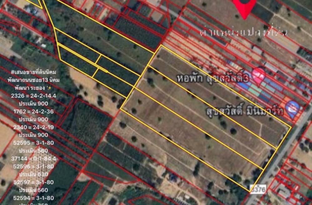 นิคมพัฒนา , จังหวัดระยองขายที่ดินม่วงลายนิคมพัฒนา ติดถนน 3376 ระยอง ขนาดที่ดิน 109 ไร่ 3 งาน 52.9 ตารางวา โฉนด 10 ใบ
