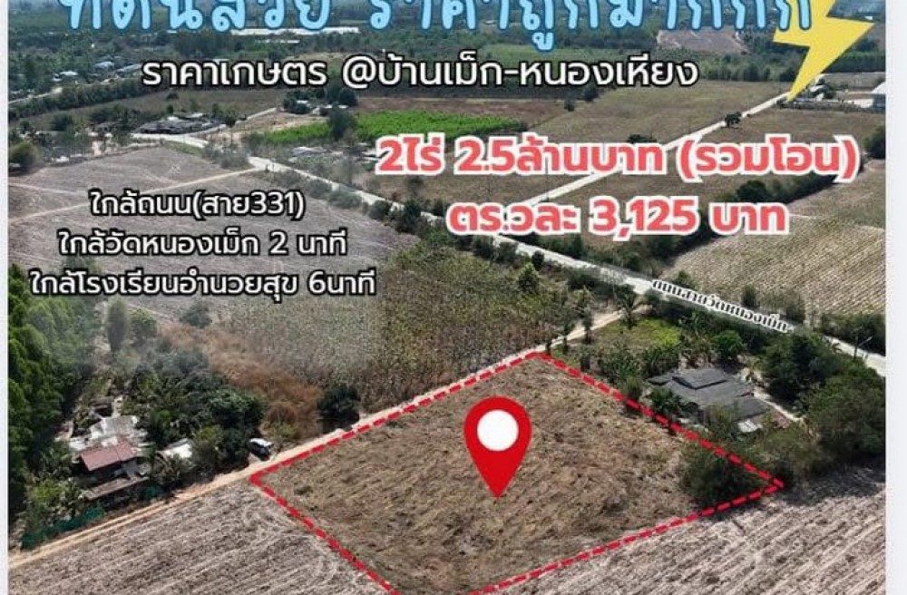 พนัสนิคม , จังหวัดชลบุรีที่ดิน2ไร่ บ้านเม็ก พนัสนิคม ใกล้แหล่งชุมชนและถนน 331