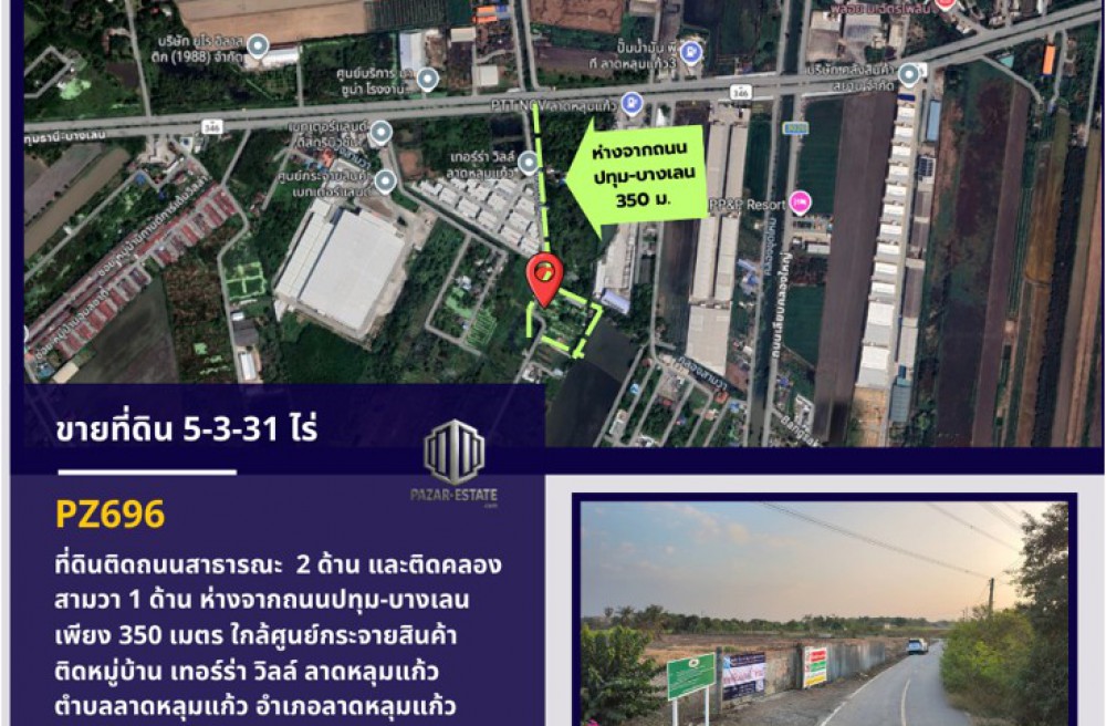 -ที่ดินห่างจากถนนปทุม-บางเลนเพียง 350 เมตร