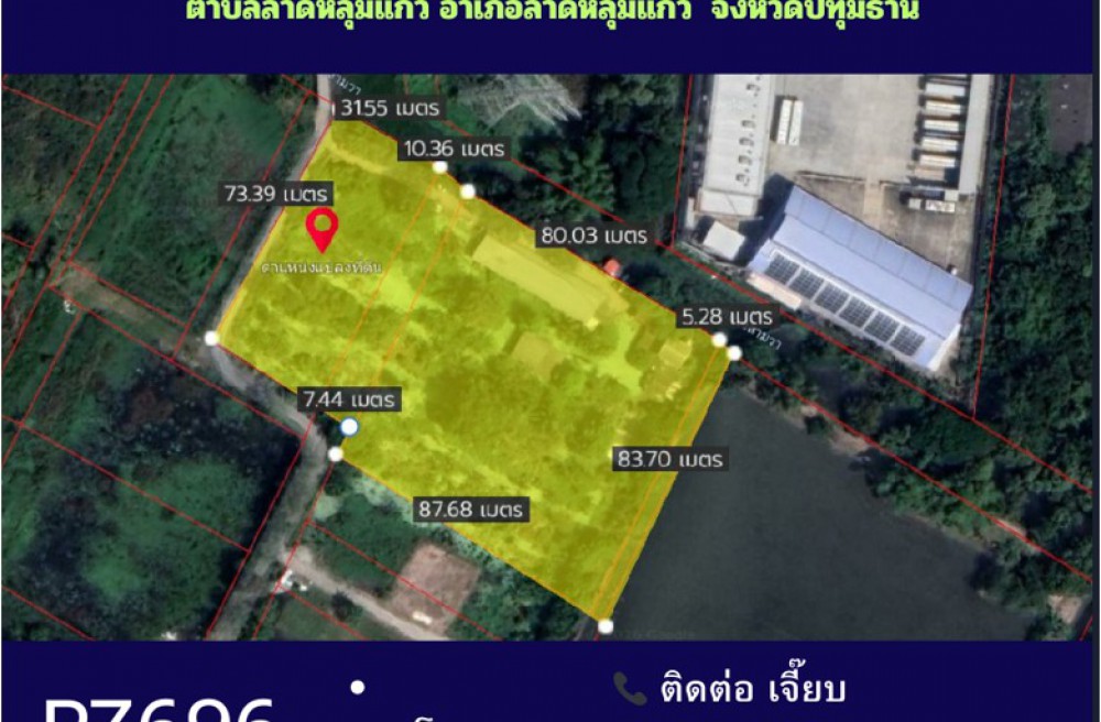 ลาดหลุมแก้ว , จังหวัดปทุมธานีPZ696-ขายที่ดินถมแล้ว 5-3-31 ไร่ ติดถนนสาธารณะ