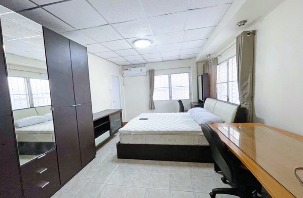 เตียงนอน 1 หลัง ที่นอน 1 ชิ้น โต๊ะทำงาน / โต๊ะอเนกประสงค์ 1 ตัว เก้าอี้ 1 ตัว ตู้เสื้อผ้า 1 ใบ เครื่องปรับอากาศ 1 เครื่อง