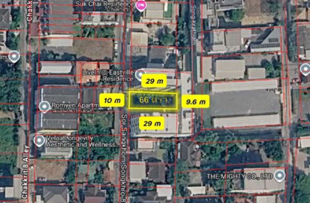 ที่ดินขนาด 66 ตารางวา ทำเลดี รายล้อมด้วยอพาร์ทเมนต์ทั้งสองฝั่ง แหล่งชุมชนหนาแน่น เหมาะสำหรับทำธุรกิจหรืออยู่อาศัย มีฐานลูกค้าพร้อม
