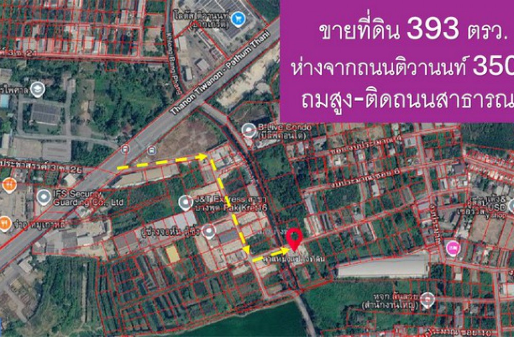 ปากเกร็ด , จังหวัดนนทบุรีขายที่ดิน 393 ตรว. ทำเลศักยภาพสูง ใกล้แจ้งวัฒนะ-ทางด่วน เหมาะสร้างโกดัง คลังสินค้า คลังขนส่ง