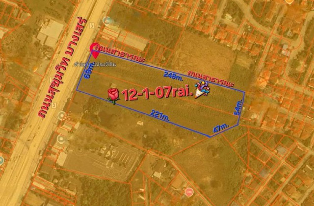 เนื้อที่ขนาด 12-1-07 ไร่ (4,907 ตรว.)
