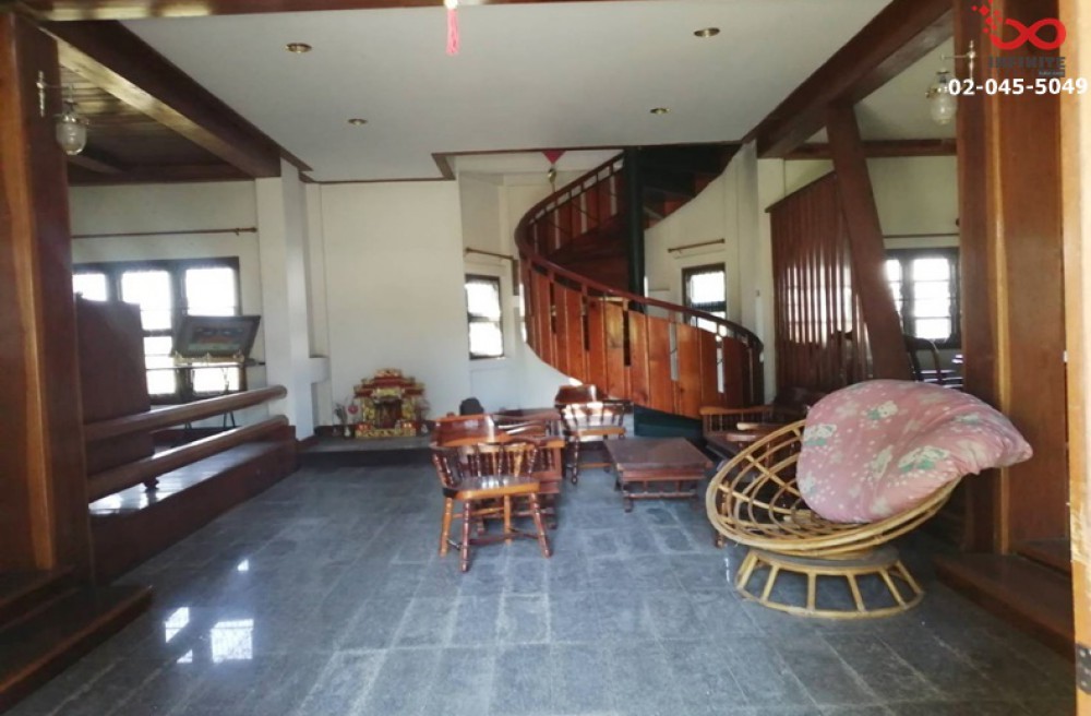 ตกแต่ง : พื้นหินอ่อนผสมไม้สักทอง บันไดวนทำด้วยไม้สักทอง