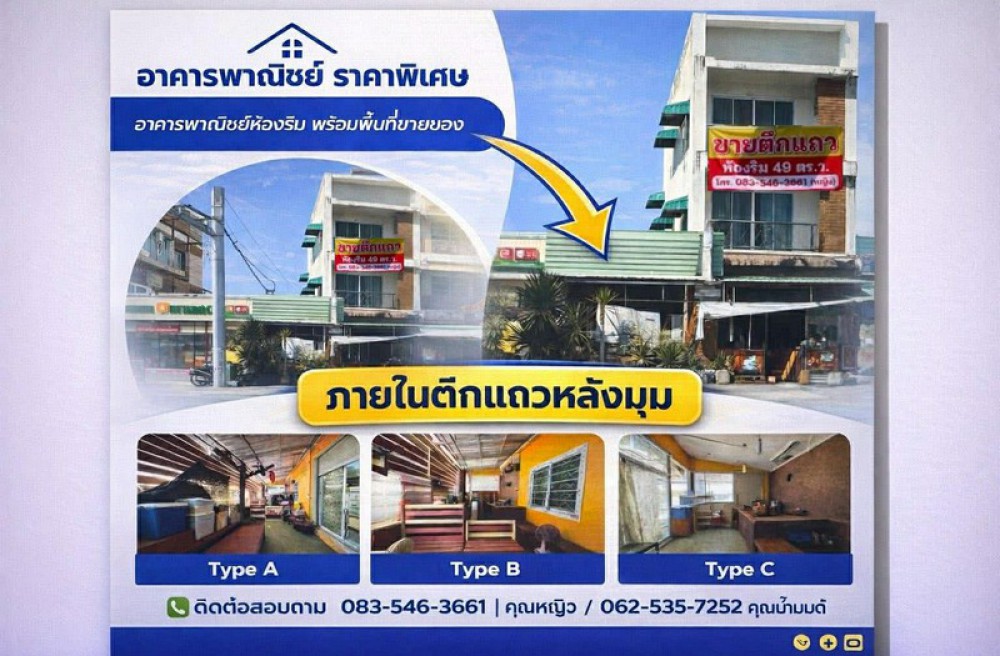 ตึกอาคารพาณิชย์ ตึกริม ติดร้านสะดวกซื้อ CJ More กม.5