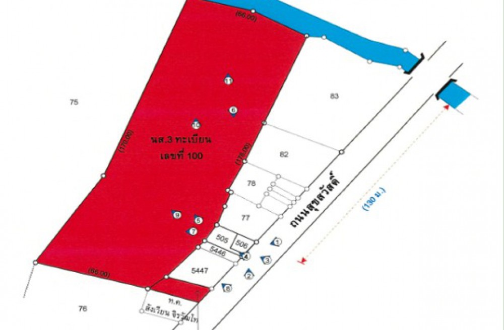 เมืองสมุทรปราการ , จังหวัดสมุทรปราการขายที่ดินพร้อมอาคาร 6-3-38 ไร่ ติด ถ.สุขสวัสดิ์ เยื่องกับวัดไตรมิตรวราราม สมุทรปราการ