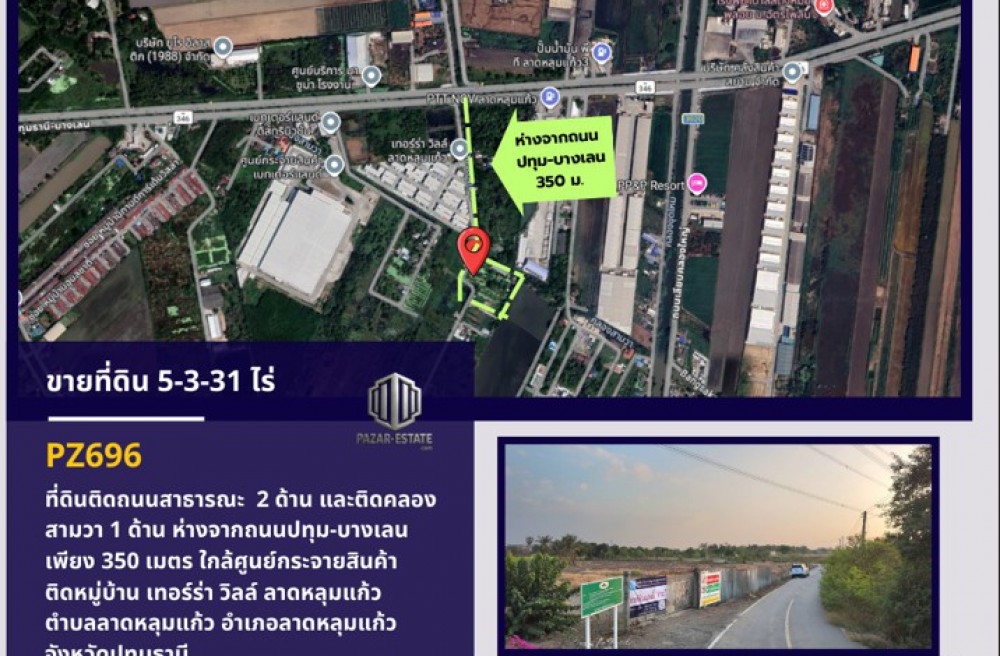 -ที่ดินห่างจากถนนปทุม-บางเลนเพียง 350 เมตร
