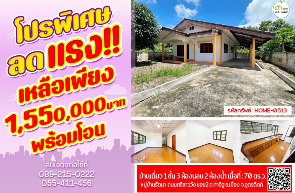 เมืองอุตรดิตถ์ , จังหวัดอุตรดิตถ์#รหัสทรัพย์ : HOME–0513 บ้านเดี่ยว 1 ชั้น