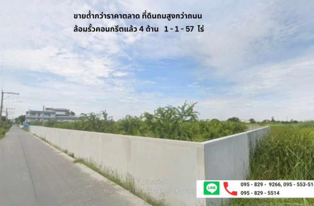 - ที่ดินถมสูง ล้อมรั้วทำด้วยคอนกรีต พรีเมี่ยม