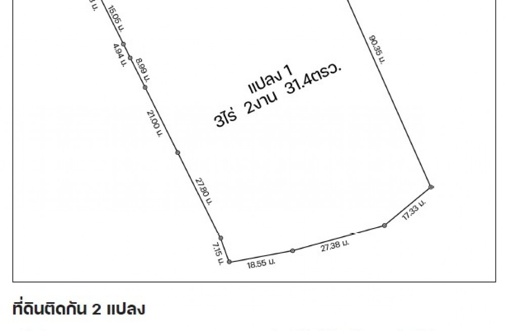 ขนาดพื้นที่รวม : 3ไร่ 2งาน 31.4 ตรว. + 2งาน 34.8 ตรว.