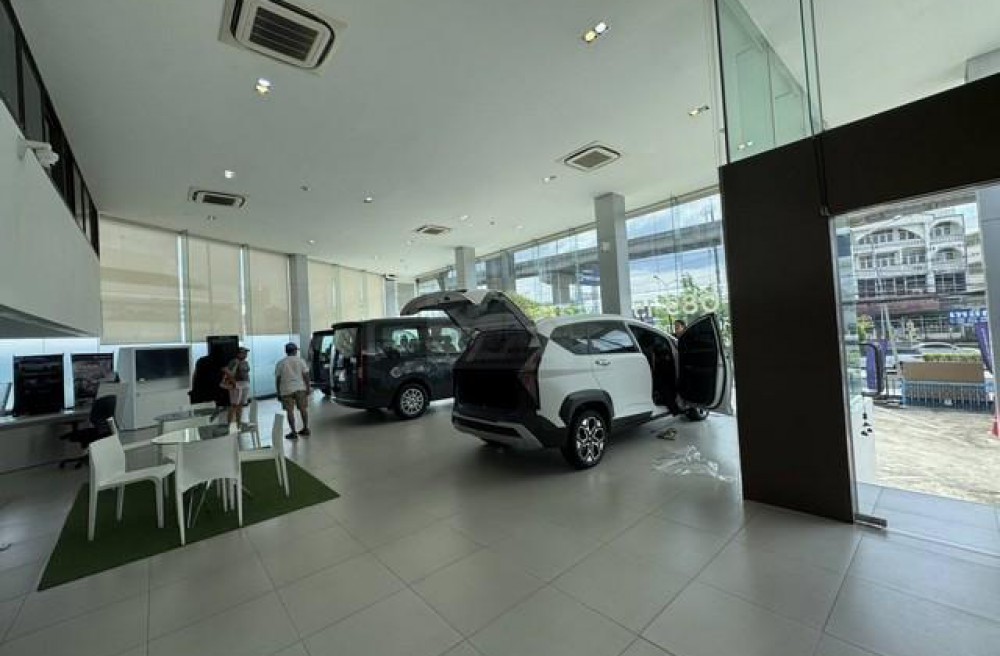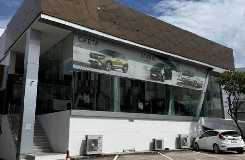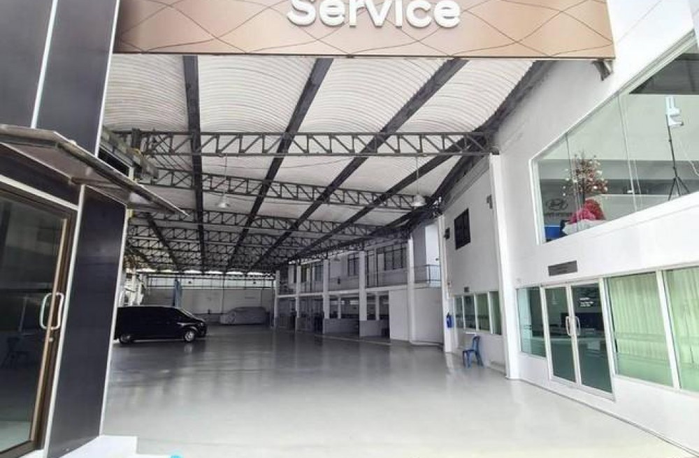 ตัวอาคารพร้อมใช้งาน อาคารดีไซน์โมเดิร์น โชว์รูมกระจกใสเต็มพื้นที่ มีพื้นที่ศูนย์บริการด้านหลัง